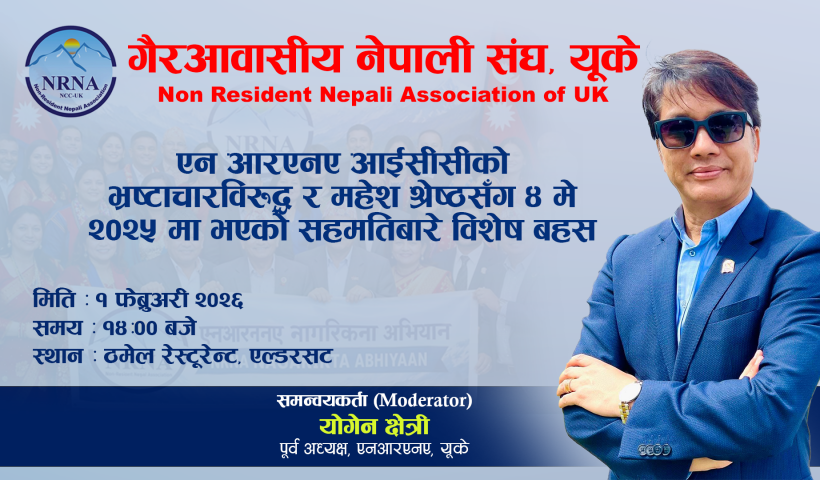 एनआरएनए यूकेले भ्रष्टाचार र सहमति विषयक विशेष बहस कार्यक्रम आयोजना गर्दै