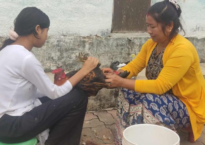 कुखुराको भालेलाई ‘अप्रेसन’ गरेर बधिया बनाइँदै
