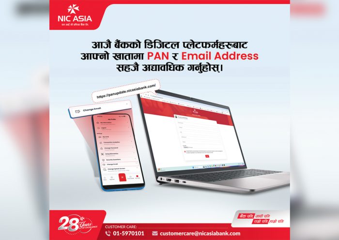 खातामा प्यान र ईमेल ठेगाना अद्यावधिक गर्न एनआईसी एशिया बैंकको आग्रह